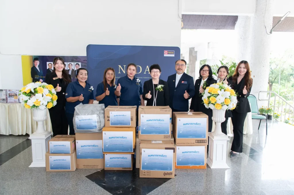 เมื่อวันศุกร์ที่ 12 ธันวาคม 2568 ศาสตราจารย์ ดร.ทิพวรรณ หล่อสุวรรณรัตน์ อธิการบดี พร้อมด้วยคณะผู้บริหาร คณาจารย์ และเจ้าหน้าที่จากส่วนสื่อสารองค์การ กองวิเทศสัมพันธ์และสื่อสารองค์การ จัดกิจกรรมส่งมอบเสื้อผ้า เสื้อกันหนาว ผ้าห่ม และอุปกรณ์กันหนาวต่าง ๆ ภายใต้โครงการ “ปันไออุ่นชาวนิด้า…สู่ชาวชุมชนสีคิ้ว” ณ สถาบันบัณฑิตพัฒนบริหารศาสตร์ วิทยาเขตสีคิ้ว จ.นครราชสีมา โดยมีผู้แทนจากเทศบาลตำบลลาดบัวขาวเป็นผู้รับมอบสิ่งของเพื่อนำส่งต่อให้กับประชาชนที่ขาดแคลนในพื้นที่โดยรอบนิด้า วิทยาเขตสีคิ้วต่อไป